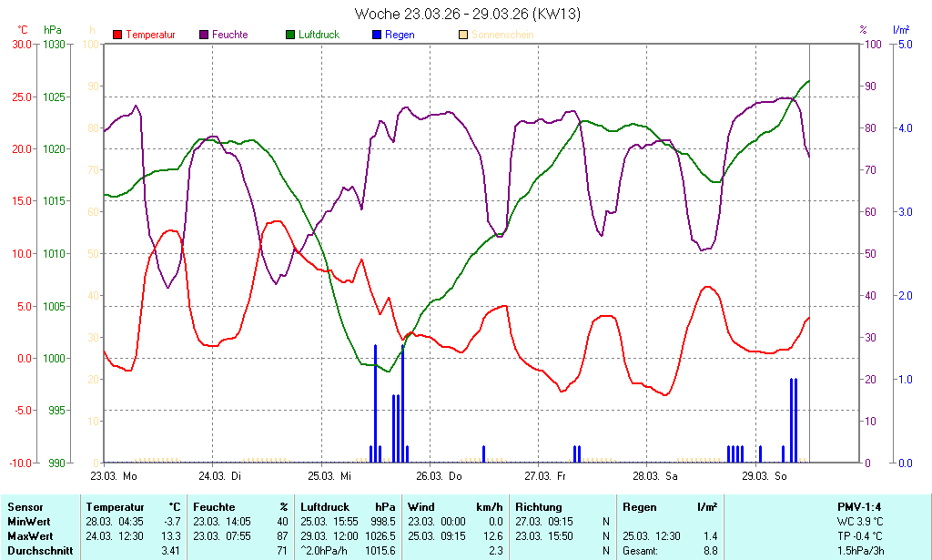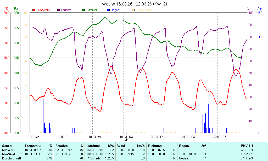 Das Wetter wird präsentiert mit freundlicher Unterstützung der Die Daten stammen aus einer Wetterstation der Güterverwaltung und werden alle 5 Minuten auf der Internetseite aktualisiert. |