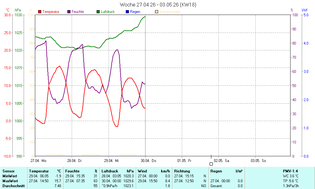 Das Wetter wird präsentiert mit freundlicher Unterstützung der Die Daten stammen aus einer Wetterstation der Güterverwaltung und werden alle 5 Minuten auf der Internetseite aktualisiert. |